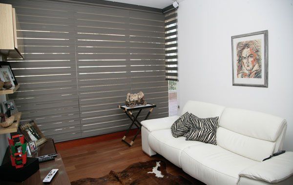 son fabricadas con hilos de poliéster de alta firmeza, formando unos telones de diferentes medidas según sea la referencia de la cortina, cuenta con fibras más delicadas entre franjas totalmente opacas que dan la apariencia de velo, cuando estas franjas se encuentran alineadas de manera horizontal, permiten tener un ambiente oscuro o translucido con una fácil manipulación y graduación.